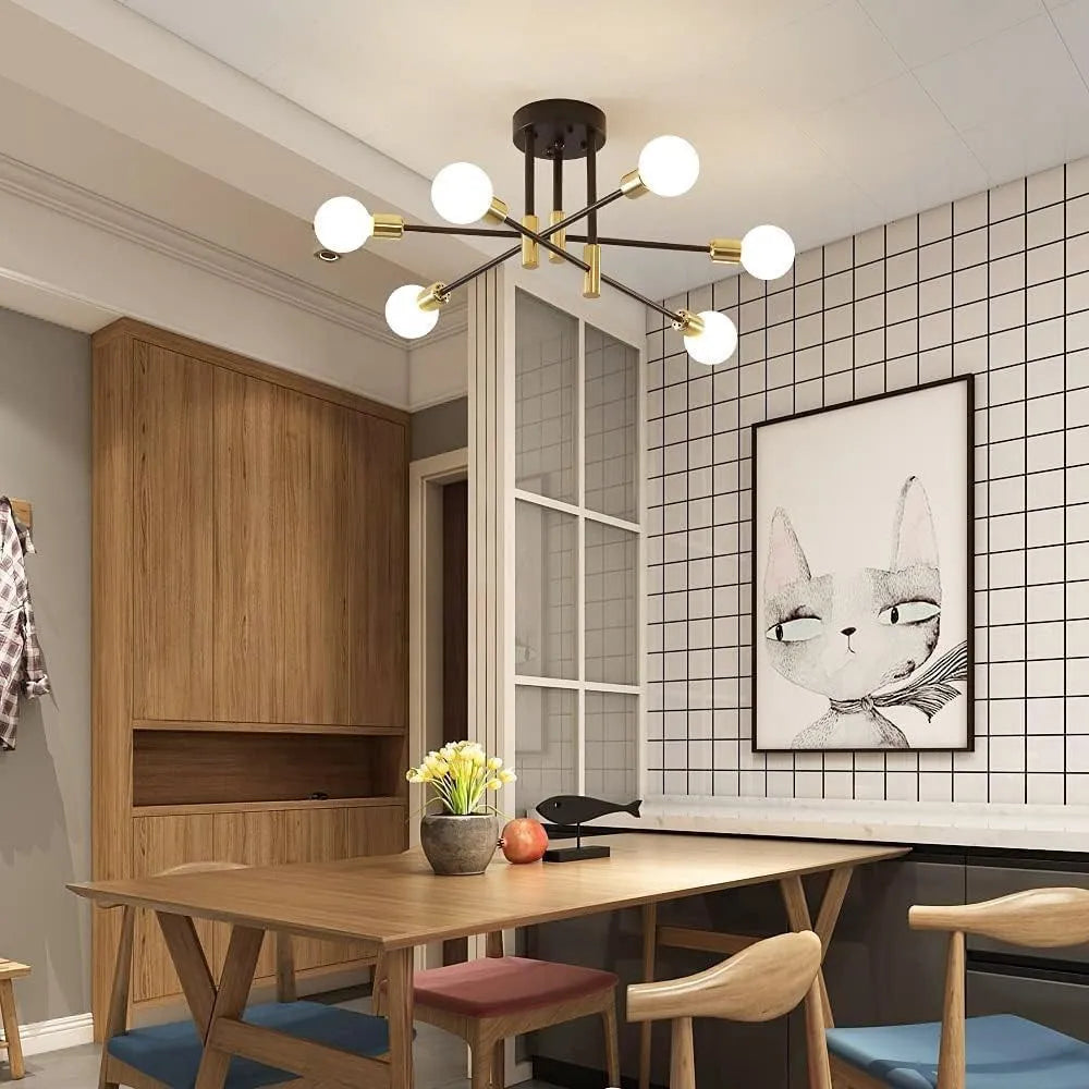 Modern 6-Light Sputnik Chandelier – Black/Gold Metal Pendant Light Fixture