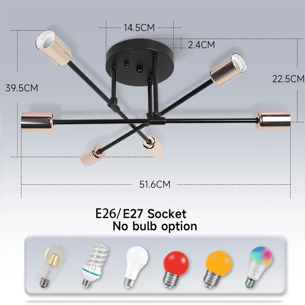 Bulb Sockets: 6x E26 (US) / E27 (EU) — bulbs not included